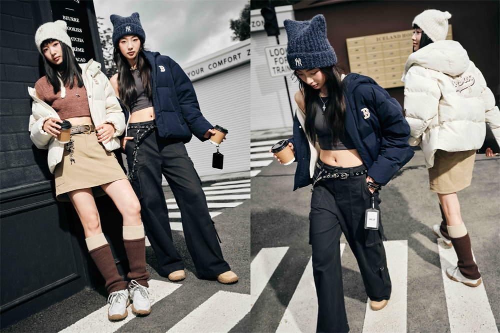 本季「高光」羽绒以张扬色系焕新登场:奶盖白、奶油杏、珊瑚粉、摩卡棕等色系演绎街头酷感。立领廓形与胸前刺绣LOGO形成视觉焦点,防泼水面料以利落剪裁勾勒随性风度。MLB潮流品牌代言人张凌赫以奶盖白羽绒叠穿开衫连帽卫衣与同色系工装裤,登场时刻热力拉满穿搭层次,以松弛姿态尽释候场风范。MLB潮流品牌代言人KARINA身着摩卡棕羽绒,高能演绎热辣备场姿态,瞬间点燃镜头,展露高光瞬间。